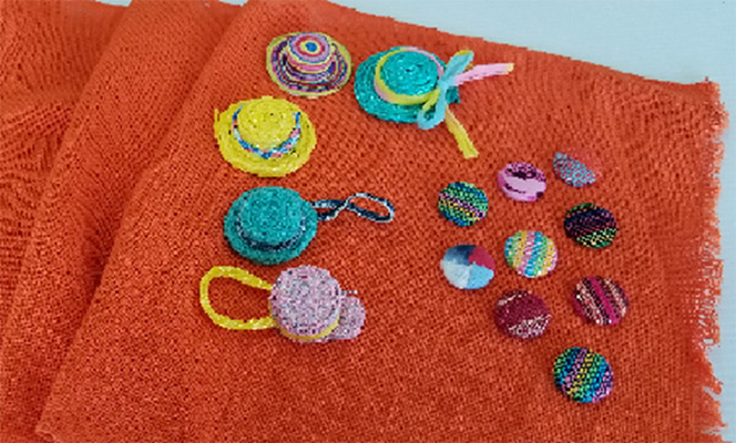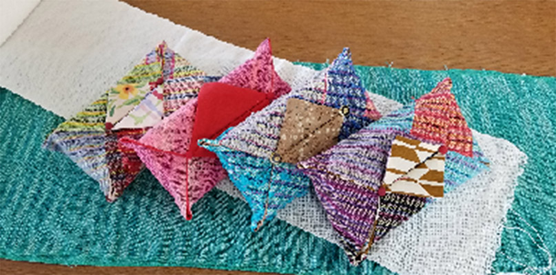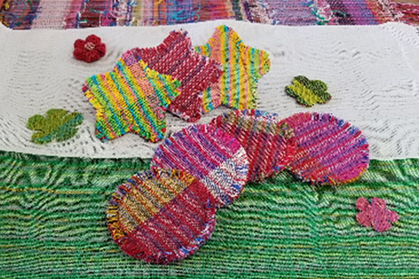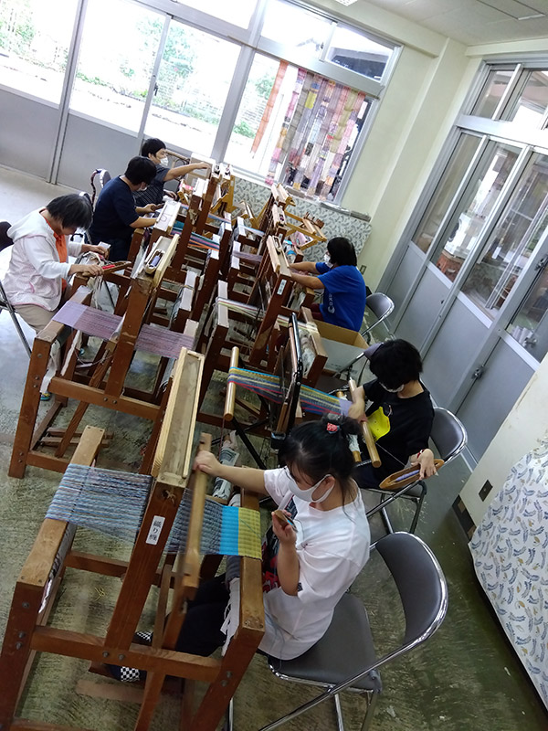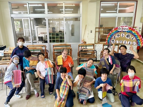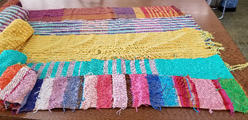 ※さをり織りの作品は、利用者一人一人の個性を出して織っていますので、すべてが違った作品に仕上がっています。